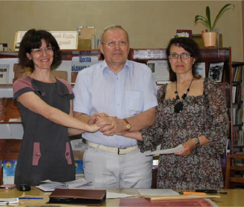 Президент Центра гражданских инициатив «Звезда Крама» Маргарита Запорожец и глава областного Клуба предпринимателей «Наше дело» Татьяна Борозенцева заключили соглашение с председателем «Клуба «Краевед» Владимиром Коцаренко о проведении конкурса патриотических публикаций